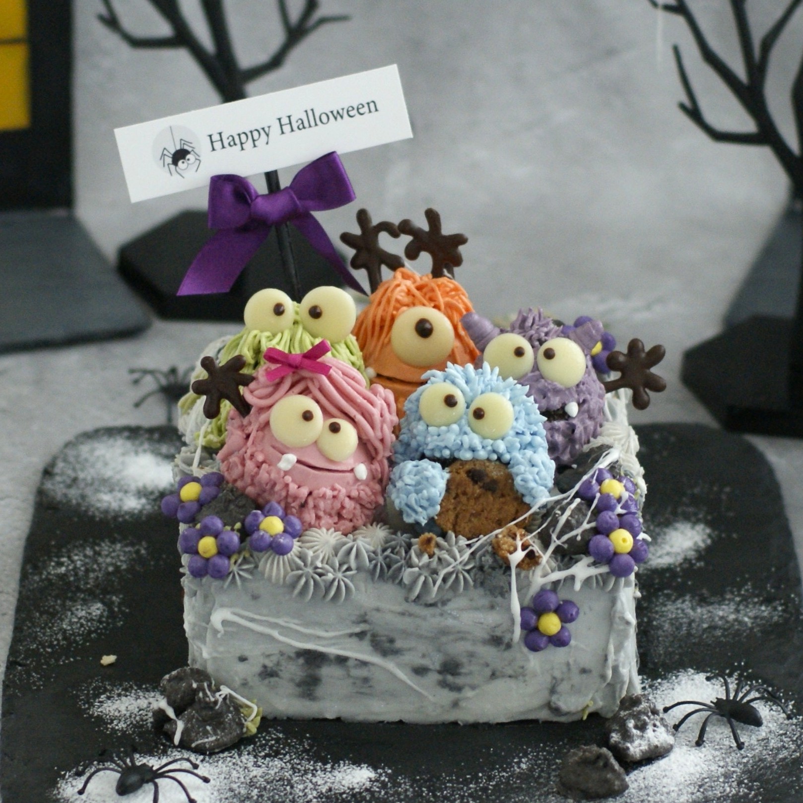 ハロウィーン1Dayレッスンは『 ハッピーハロウィーンのケーキ 』を作成します。 可愛いモンスター達がカラフルバージョンで登場します。 スクエアの抹茶スポンジを使用 …