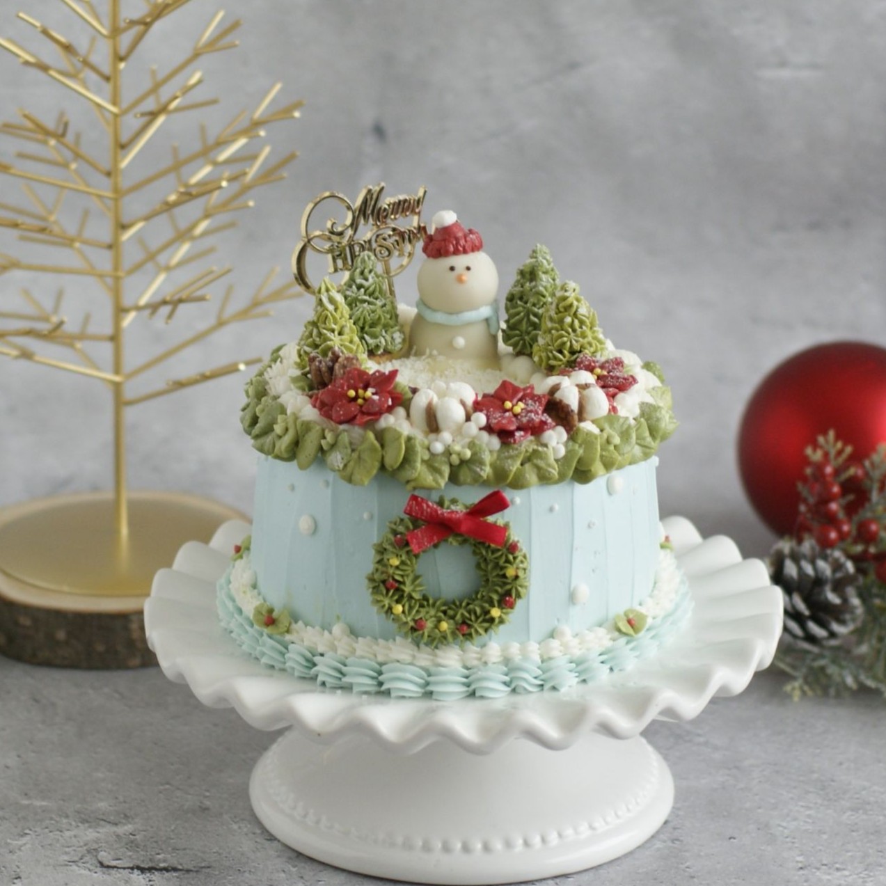 12月1Dayレッスンは『 メリークリスマスのケーキ 』を作ります。 チョコでコーティングしたスノーマンやツリー/木の実を作ったり、ポインセチア/コットンなどを絞って仕上げます。レッスンではもう少し数を作ったり絞ったりす …