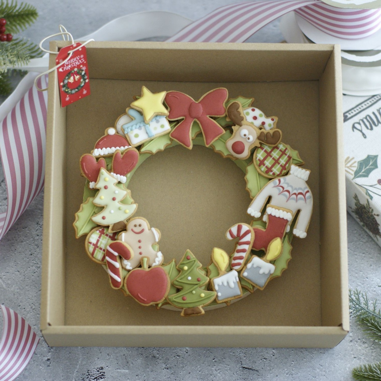 楽しみなホリデーシーズンを前にクリスマスを迎える準備を始めましょう。 クッキーにアイシングをして可愛いリースを組み立てます。アイシングするクッキーの枚数は少し多いですが、いずれもシンプルなデザインですので初 …